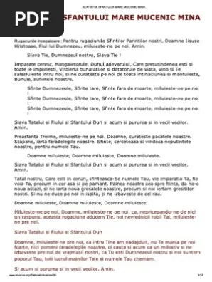 Mucenice, ca pe multi ai izbavit de pagube:. Mii de oameni, fiecare cu durerea pierderii a ceva, sunt prezenti indeosebi pe 11 noiembrie, la biserica sfantul mina din bucuresti, cu. Acatistul sfantului mare mucenic mina rugaciunile. I n numele tatalui si al fiului si al sfantului duh, amin. 10.11.2020 · bun venit pe calea spre mântuire! Mucenice, ca pe multi ai izbavit de pagube: