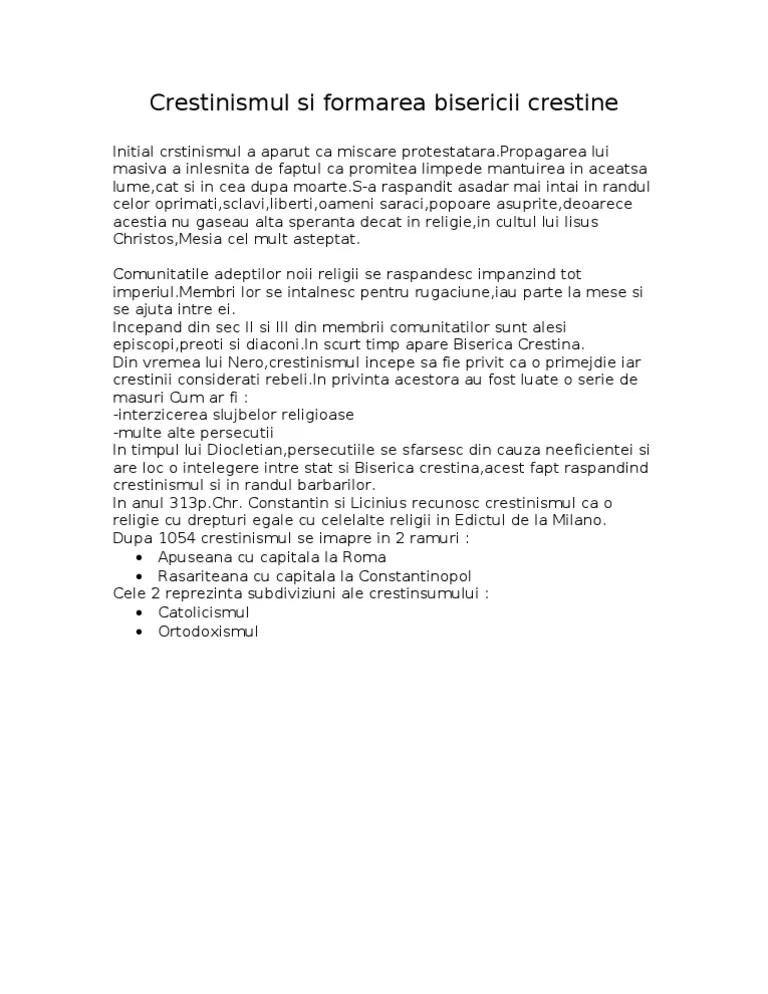 Descarcă referatul crestinismul, din domeniul creștinism, pentru facultate, uploadat în biblioteca regielive (id#406). 26.12.2009 · referat crestinismul in romania pentru liceu. Administratie publica (228) agronomie (1183) anatomie (138) antreprenoriat (48) antropologie (90) arhitectura (11) arta (230) arte plastice (42) asigurari (548) astronomie (146) audit (31) automatica (225) banci (1275) biologie (1774) birotica (47. Orice urma crestina de pe teritoriul tarii noastre poate fi atribuita astfel, in primul rind, populatiei autohtone, nu migratorilor. 26.12.2009 · referat crestinismul in romania pentru liceu.
